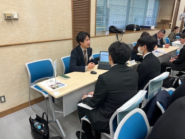 11月上旬、県内の大学において3学年生向けの業界研究イベントがあり、今年も弊社から若手社員2名がOBで参加しました。